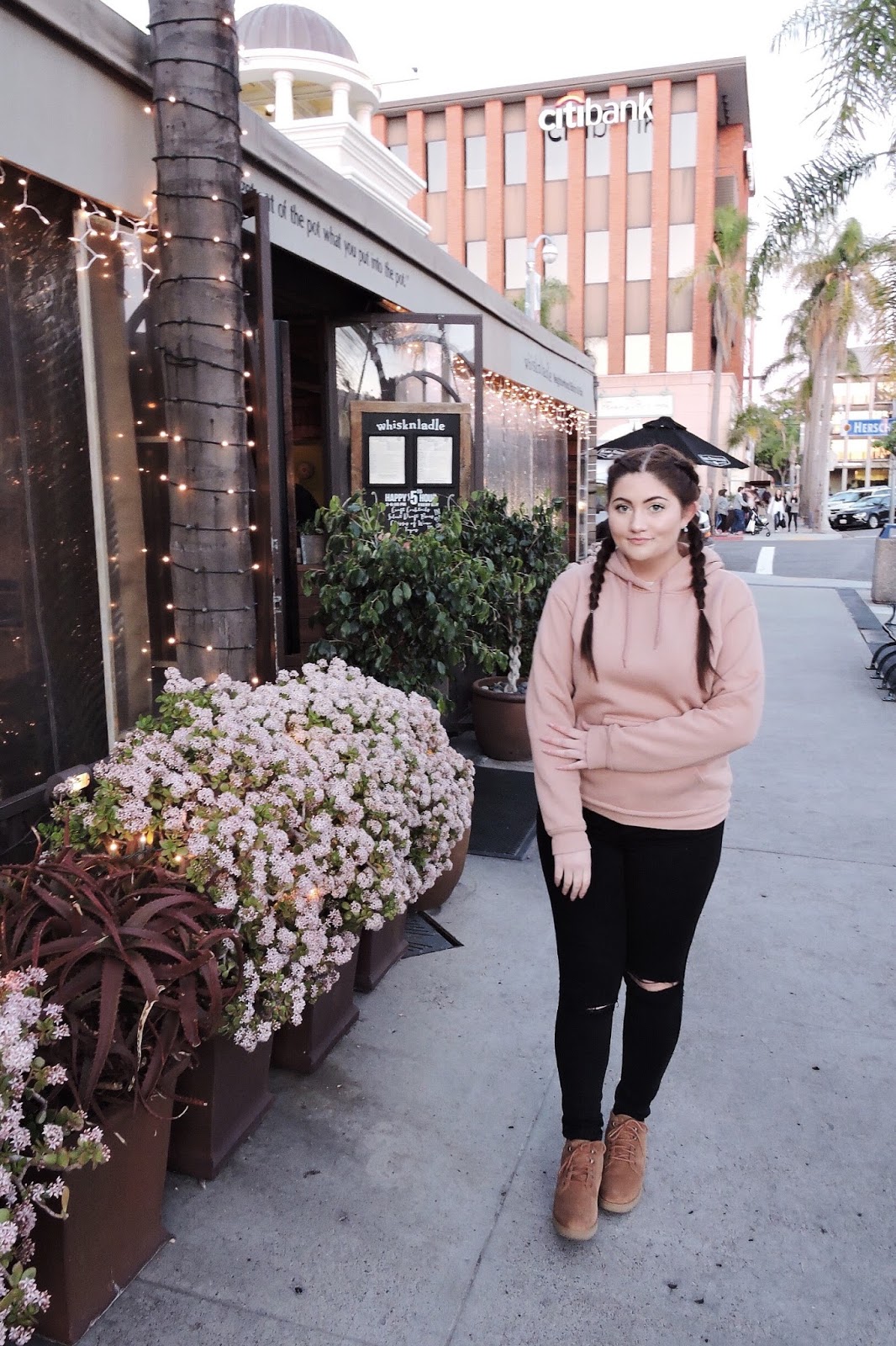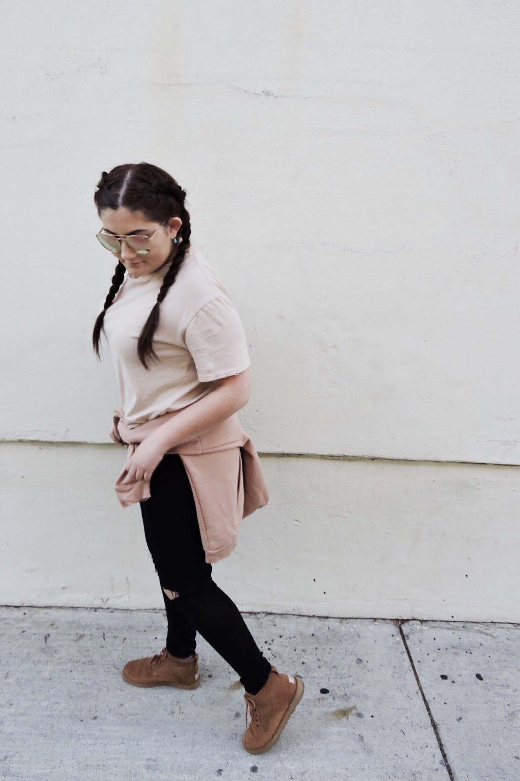 Here I’m wearing my favorite comfy blush tee from Topshop. It’s a very faint blush color so it really pairs well with deeper blush tones without ever clashing. I’m also wearing a blush hoodie from Topshop that is by far the comfiest hoodie around. And of course I can’t forget my signature blush sunnies. I’ve had a few pairs of blush sunglasses but my favorites have to be the Quay Australia cherry bombs. Quay makes so many cute blush lens sunnies, I seriously have to restrain myself from buying them all. Lastly, I want to share with you the cutest booties from Ugg that are super comfy and go well with any blush pieces I pair them with. If you’re looking for a well made pair that will last you, I recommend these! Hope you guys are enjoying the Holiday season and spending time with loved ones.