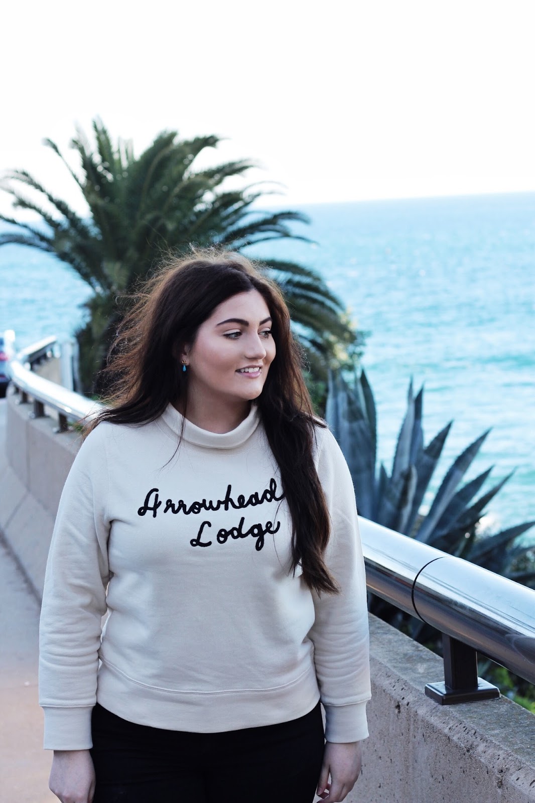 One of my favorite things to do a chilly day is grab a cup of coffee and walk along the coast. My favorite spot to enjoy the ocean view is La Jolla Cove where you can venture into the the Cave shop that goes down to the La Jolla Cave or have a picnic on the grass and watch the seals. Days like these call for cozy sweaters that will keep cold and wind out. I’ve been loving anything with a mock neck recently and fell in love with this mock neck Madewell sweater! It’s more of a sweatshirt material which keeps you warm and is a gorgeous shade of cream.