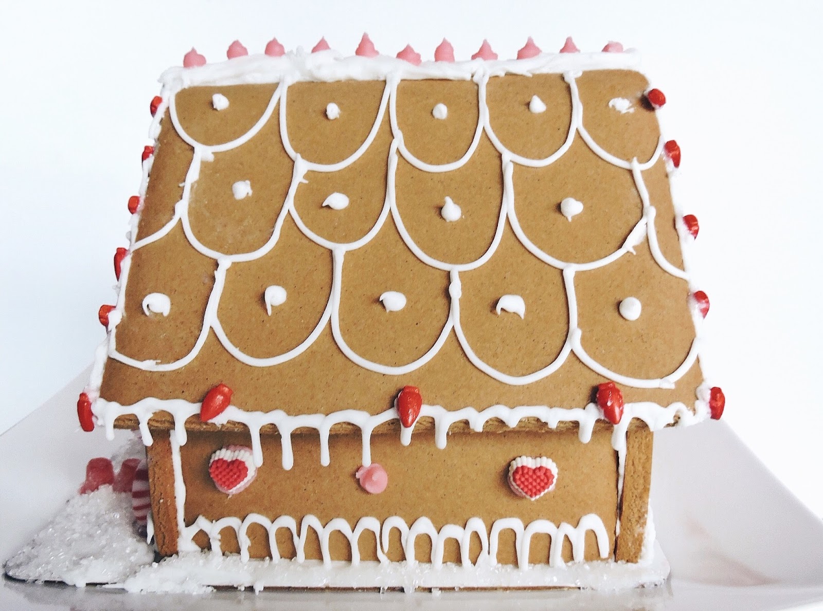 To make this gingerbread house I picked up a Wilton Kit from Michael’s. There are a variation of kits to chose from but I decided to stick with the classic kit. It comes with all the cookie pieces, icing, fondant, a variation of candy and the cardboard piece to build the house on. I used other candies and sprinkles that I had on hand and decided to create a pink, Scandinavian inspired gingerbread house! I hope you find inspiration to build your own gingerbread houses and start a fun Christmas tradition.